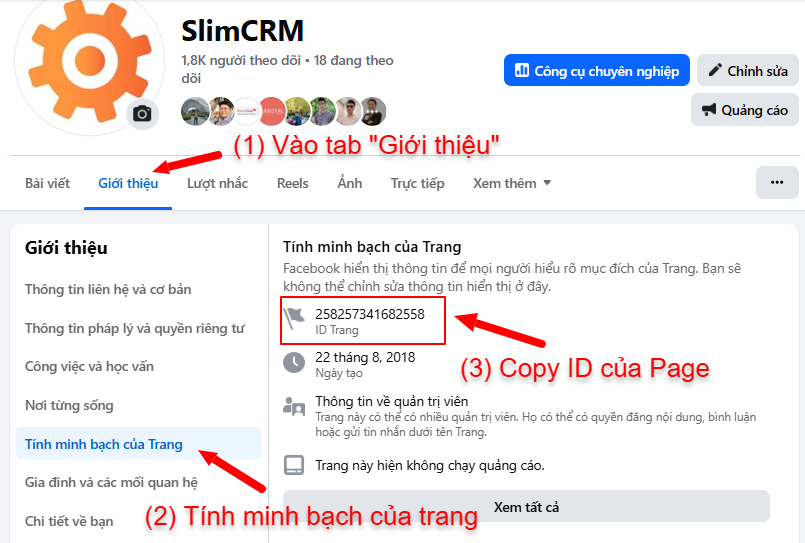 👉 Page ID bạn lấy trong phần “Tính minh bạch của Trang” trên Facebook.