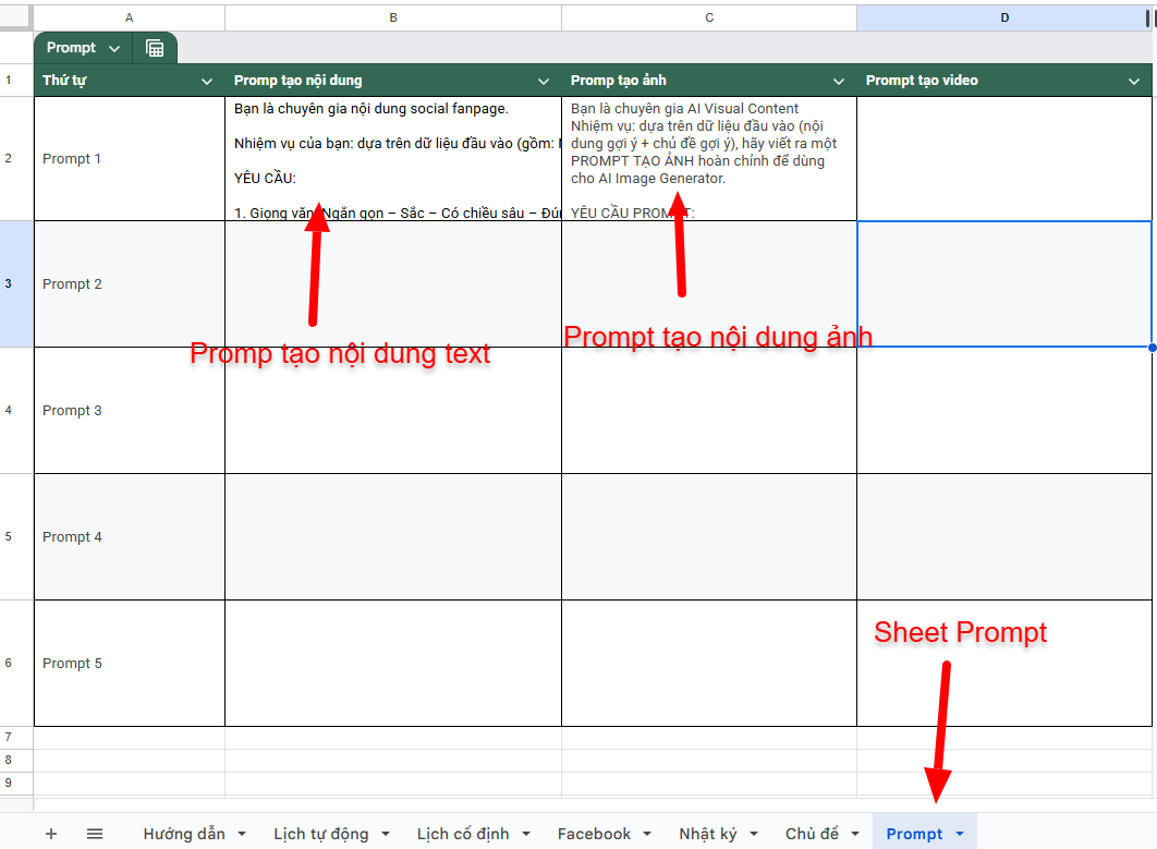 1.2 – Tùy chỉnh Prompt trong Sheet “Prompt”