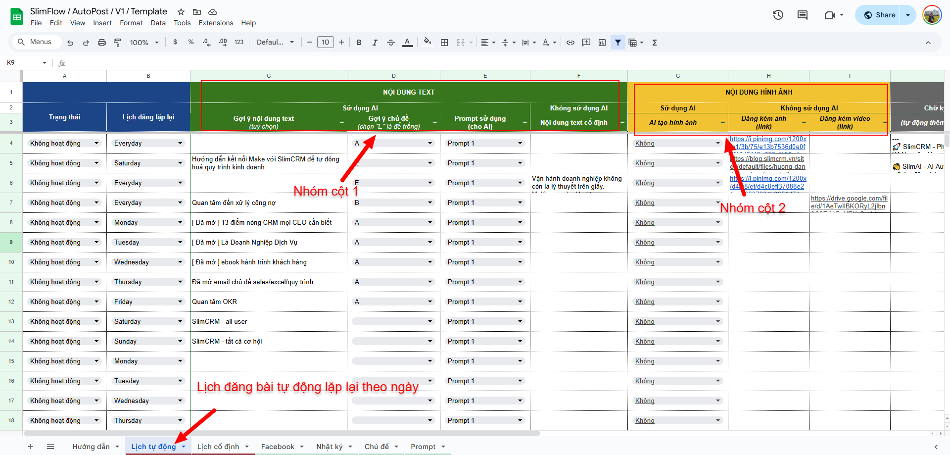 SlimFlow – Social AutoPilot là giải pháp tự động quản lý và đăng bài trên mạng xã hội do đội ngũ SlimAI phát triển, giúp doanh nghiệp điều khiển toàn bộ hệ thống fanpage chỉ bằng một file Google Sheet.