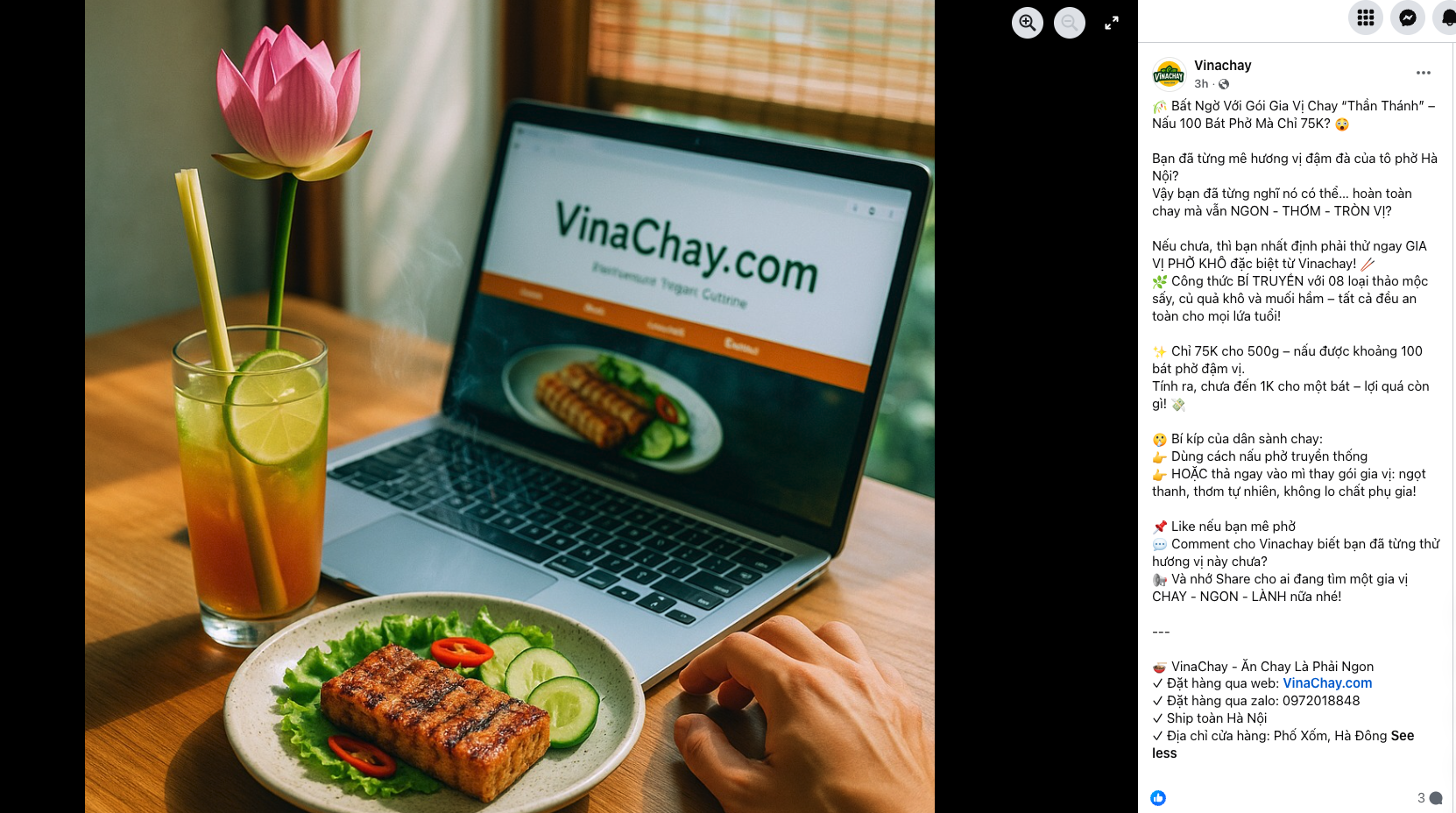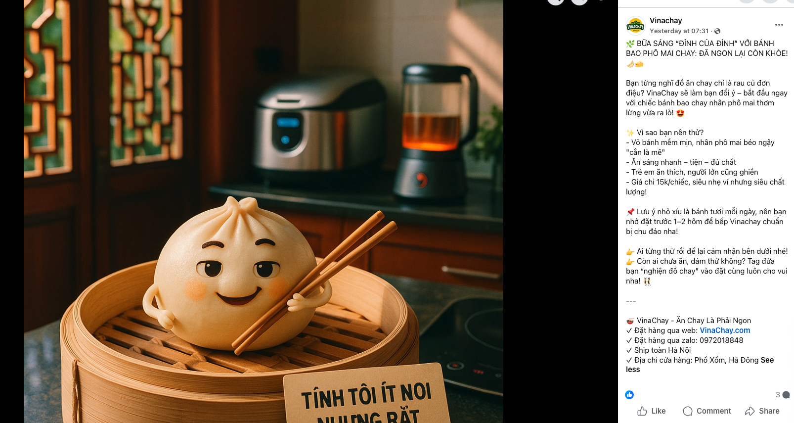✨ Caption tự nhiên, gần gũi: đúng phong cách “ăn chay an lành”.