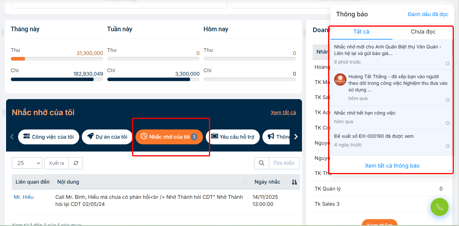 [SlimCRM]: Hệ thống tự động nhắc lịch follow-up, cảnh báo cơ hội sắp quá hạn.