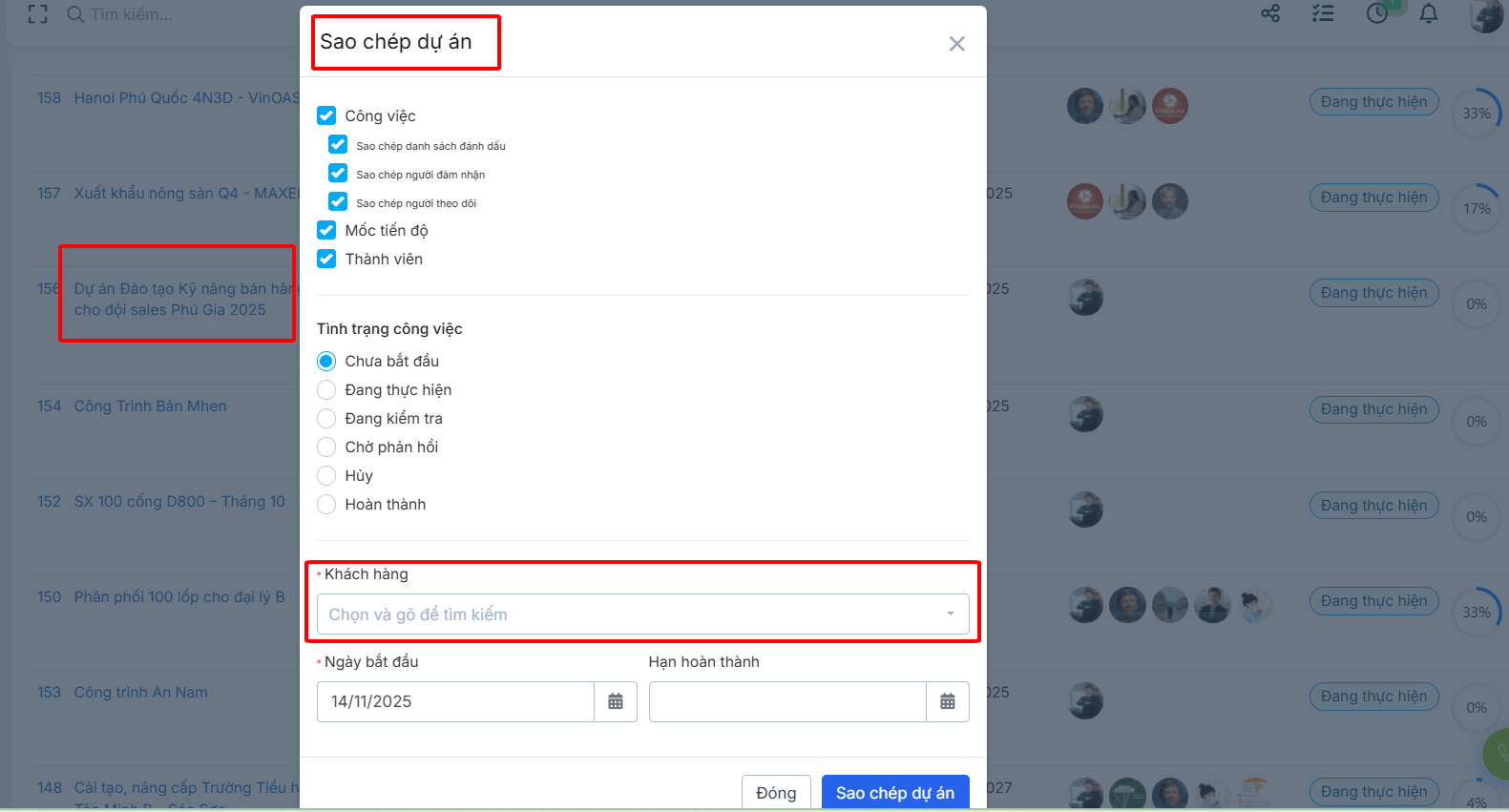 | Project (Dự án đào tạo) | Theo dõi tiến độ lớp học | Gắn giảng viên – học viên – lịch giảng theo hợp đồng |